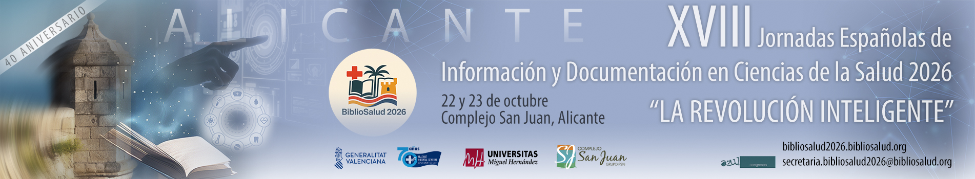 En nombre del Comité Organizador, me complace daros la más cordial bienvenida a las Jornadas BiblioSalud 2026, que celebraremos en Alicante los días 22 y 23 de octubre de 2026.